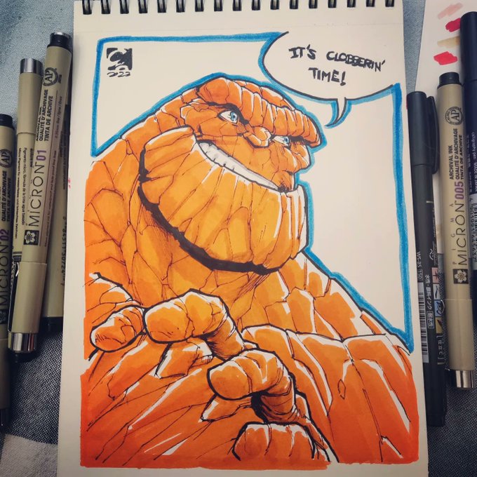 It's #MarvelMonday time! Who's your favourite member of the #FantasticFour? Mine is #MisterFantastic, but here's #TheThing for you! Would you like to see the rest of the family? #Marvel #MarvelFanart #MarvelArt #Fanart #ComicArt #ComicArtist #Inks #Markers