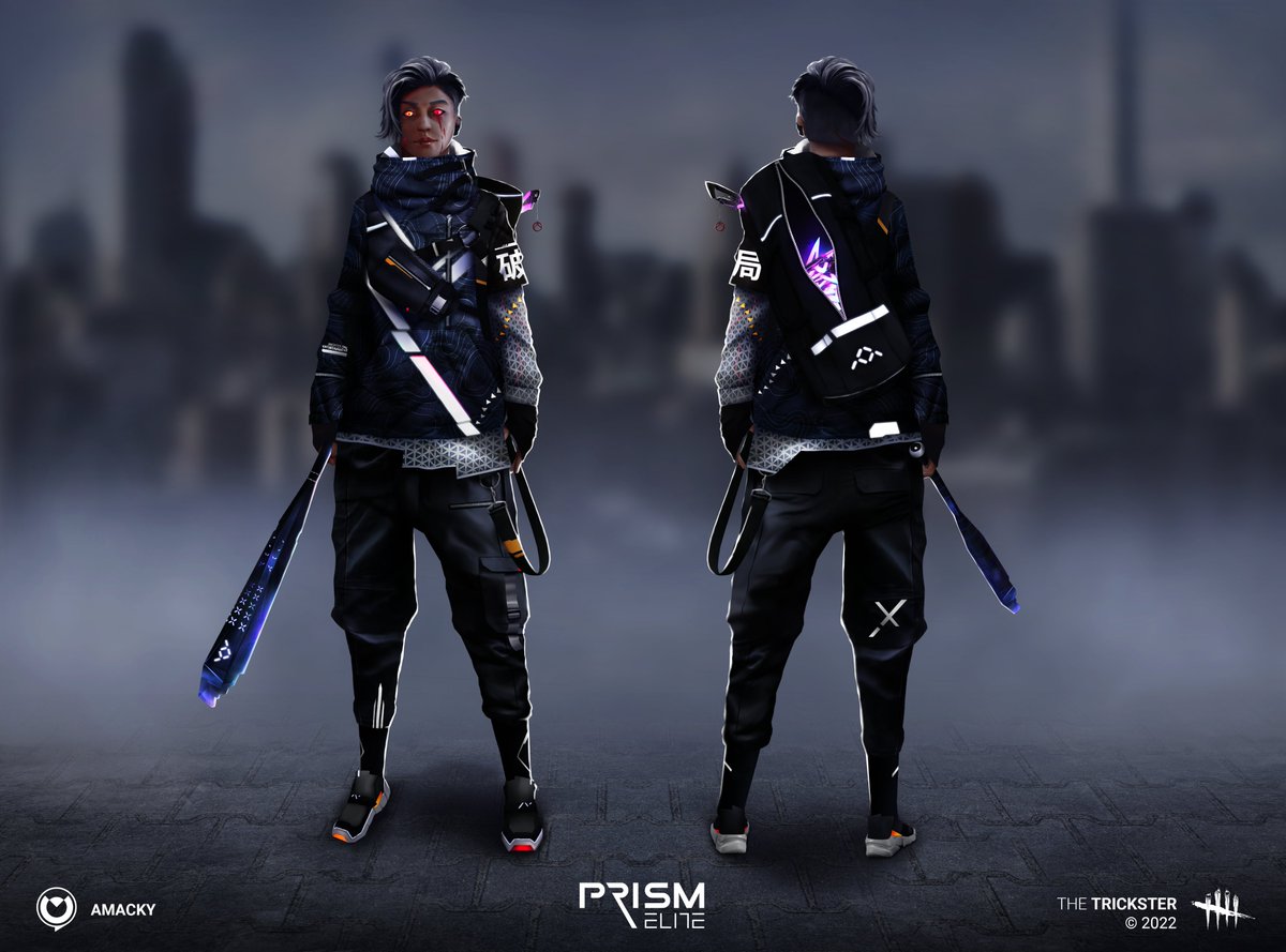 PRISM ELITE - THE TRICKSTER Even on the street, the Trickster remains stylishly equipped. The baseball bat changes colour automatically during the game, however, when the Trickster hits with his bat, it breaks and changes shape ! @DeadByBHVR #TheTrickster @DbDMobile #fanart