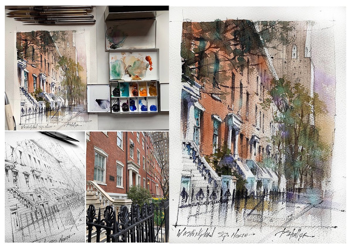 Quick little sketch of Washington Square @NYC using a #HouseofHoffman travel palette, @DS_StoresEvents Daniel Smith pigments, @FaberCastellUSA sketch pencil, and #Escoda travel watercolor brushes #NYC #watercolor #pleinair #painting #art #architecture #thevillage #watercolor