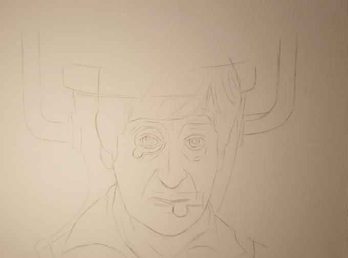 The 2nd Doctor isn't feeling quite his usual self.. 😬 #DoctorWho #2ndDoctor #Cyberman #TheWheelInSpace #commission #WorkInProgress #canvas #illustration #art