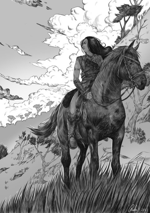 Inktober Day 27: Faile Bashere (The Wheel of Time) - “Why is it that as a mans courage goes up, his sense goes down?” #failebashere #thewheeloftime #inktober #inktober2021 #art #artists #arte #artsy #digitalart #illustration #drawings #drawing #draw