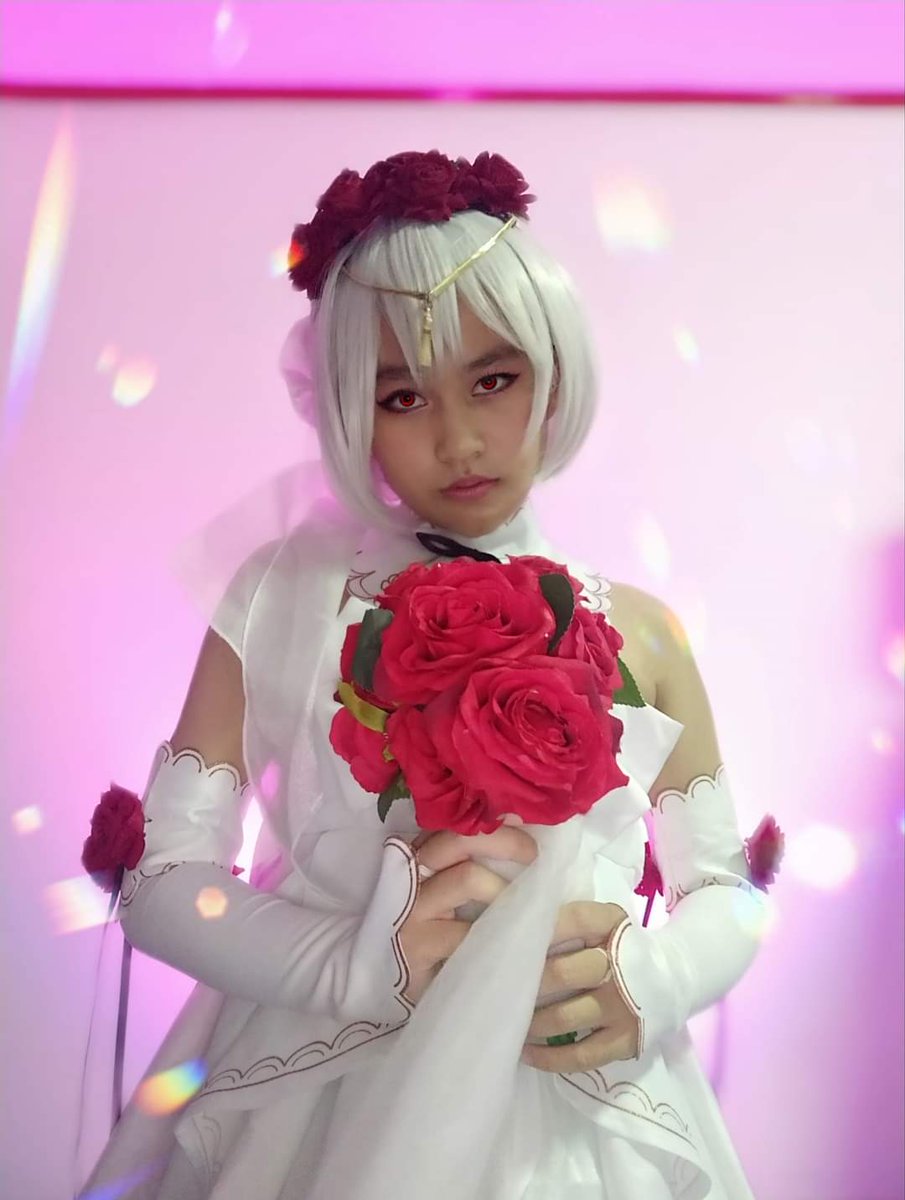 I'm the world's cutest... And prettiest in my bridal wear! See more: naver.me/5l6zWjCw Photos 📷 @ganjjjang #cosplay #csl #theresa #minemes #honkaiimpact3 #rosybride #월화드레스 #미네메스 #테레사 #붕괴3