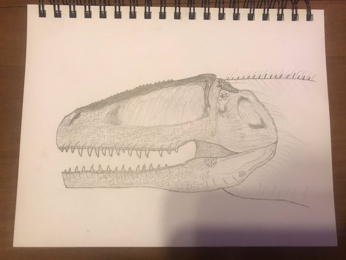 And one more sketch. This one being a carcharodontosaur based on the old Giganotosaurus skull. #TheropodThursday #dinosaurs #paleoart #paleontology