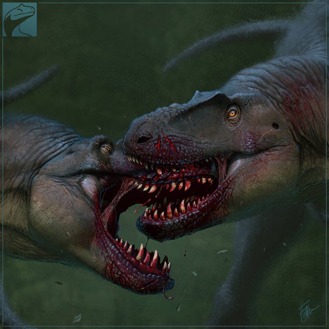 Well, time for some #paleoart for #TheropodThursday. As always @FredtheDinoman provides absolutely beautiful renderings of face biting in theropods. #dinosaurs #paleontology