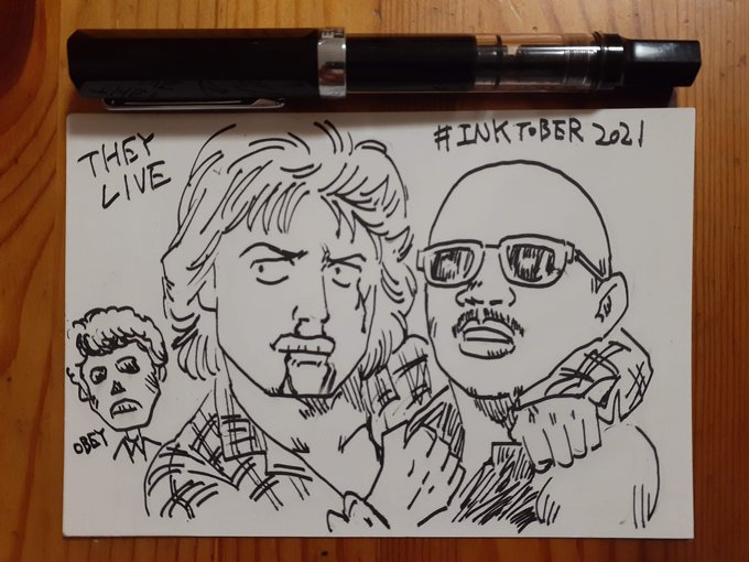 インクトーバー1日目「ゼイリブ」 「このサングラスかけろ!」「嫌だ」「こんにゃろ!」で大の大人が延々と殴り合ったあと、「え? やべえだろ」となる映画です。 #inktober2021day1 #inktober #インクトーバー2021 #fountainpen #twisbi #Theylive