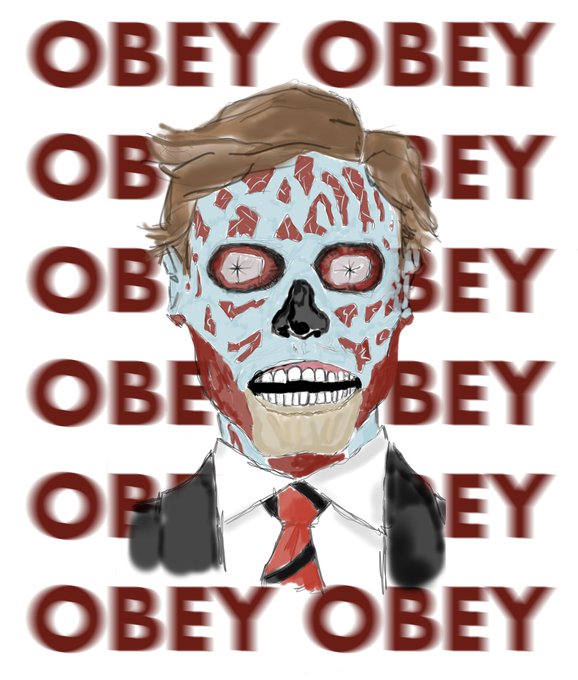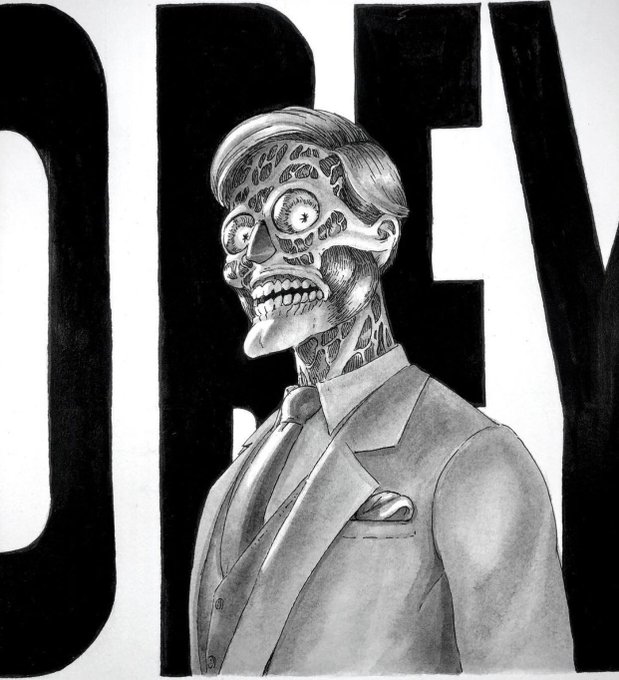 From a cpl yrs ago, one of the most prophetic pieces I ever did, was a rejected t-shirt design #art #horror #illustration #theylive #zornowmustbedestroyed