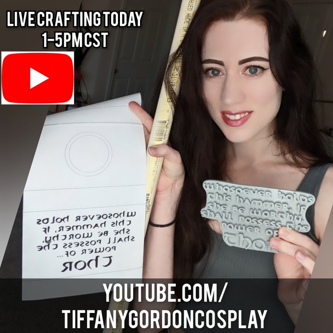 Making Thor's Hammer today on my LIVE Crafting stream on YouTube youtu.be/ueH59E9hvrY from 1-5pm CST. Come join the stream, hang out, ask questions and just have fun 😊🖤 #live #thor #thorcosplay #janefoster #janefostercosplay #thorhammer #evafoam #cos #cosplay