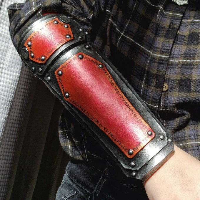 Cosplay progress has been paused whilst I've been ill, but my #TifaLockhart progress has slowly resumed and I've added fastenings to the main bracer! Excited to get more armour made as I love this colouring #ff7 #ff7cosplay #FinalFantasyVII #finalfantasy7remake #tifacosplay