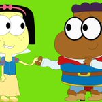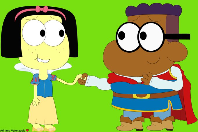 This is a drawing of Tilly Green dressed as Snow White (again) holding hands with Remy Remington dressed as the prince from the same film. Also, I made a speedpaint for it: youtube.com/watch?v=yqxilU… #BigCityGreens #TillyGreen #RemyRemington #fanart #myart