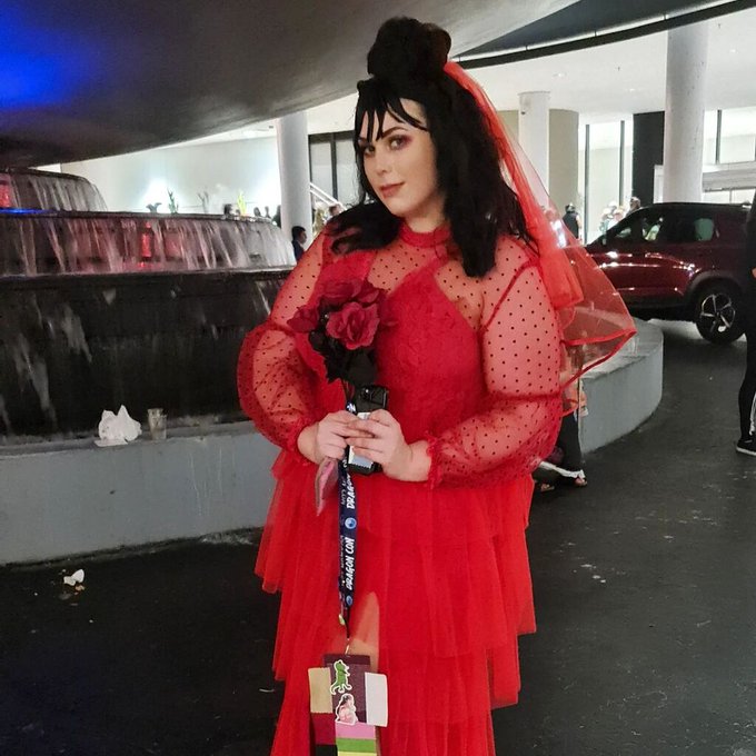 Lydia patiently waits for Beetlejuice in the car park at @dragoncon #cosplay #cosplayer #dragoncon #dragoncon2022 #dragonconcosplay #dragoncon2022cosplay #beetlejuice #beetlejuicecosplay #timburton #timburtoncosplay #winonaryder