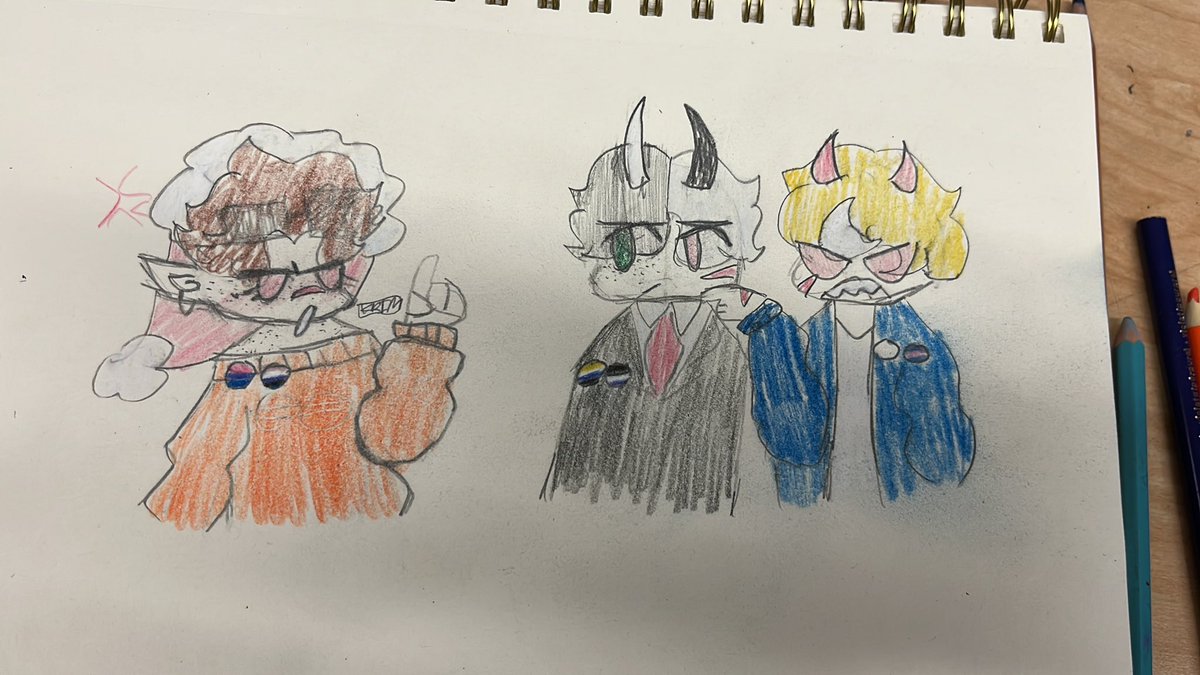 Drew this in art class. Scenery and art style inspired by @bbsub3 ‘s soft mod oneshot. A bit of Deo’s looks are from @frostthesnowgay (I really like the freckles ><) #deofanart #ranboofanart #tommyinnitfanart #timedeofanart #FNFSoftMod @tommyinnit @TimeDeo @Ranboosaysstuff