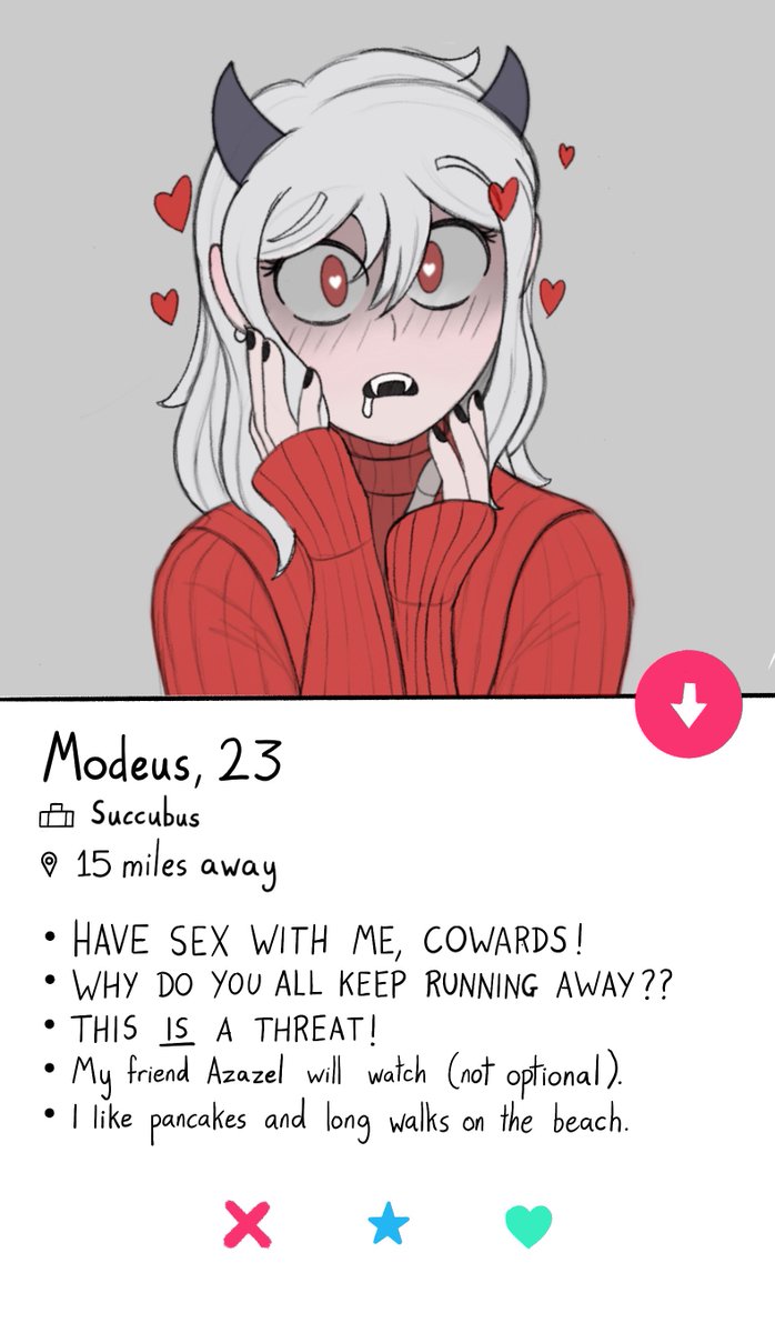 Best girl makes a #tinder account. #Helltaker #Helltakerfanart Also thank you for 30 followers! I'm not worthy😭
