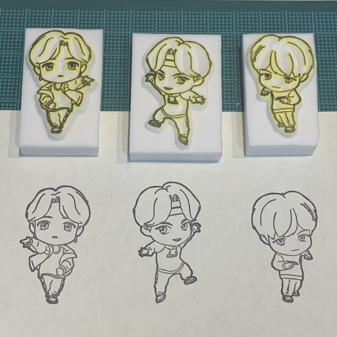 そしてホビさんが今彫り上がったので これでTinyTANは3つに💜💜💜 #BTS #TinyTAN #BTSJIN #BTSJHOPE #BTSJIMIN #btsfanart #消しゴムはんこ #eraserstamp