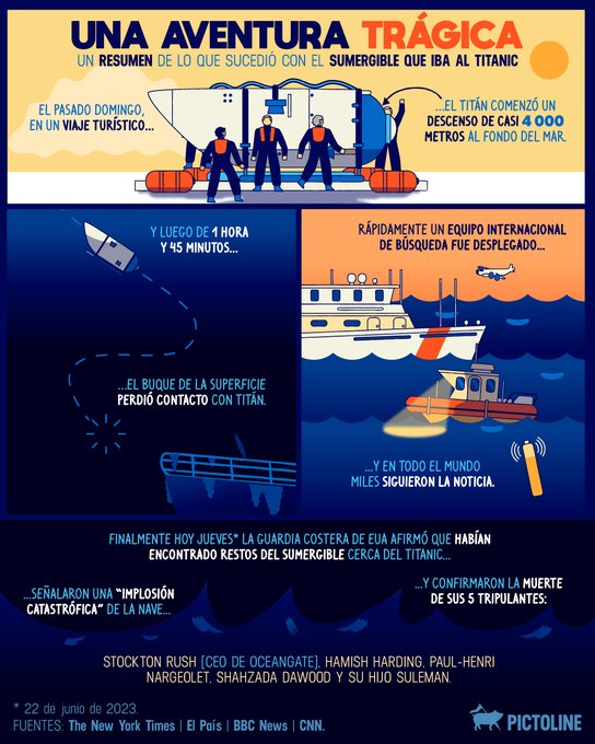 Finalmente, hoy se confirmó el destino de los tripulantes del #Titán de #OceanGate que iba al #Titanic 🚢 Este es un resumen de lo sucedido esta semana: