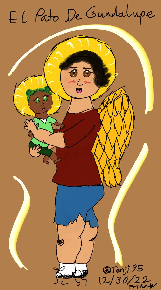 ¡Hola! Perdón por usar Google Translate, pero quería tener la oportunidad de compartir un fanart de #KarmalandV. Así que aquí está: ¡#Quackity y Titanicus como El Pato de Guadalupe y el Niño Jesús! ¡Felices vacaciones! #KarmalandFanart #Karmaland #quackityfanart #titanicusfanart