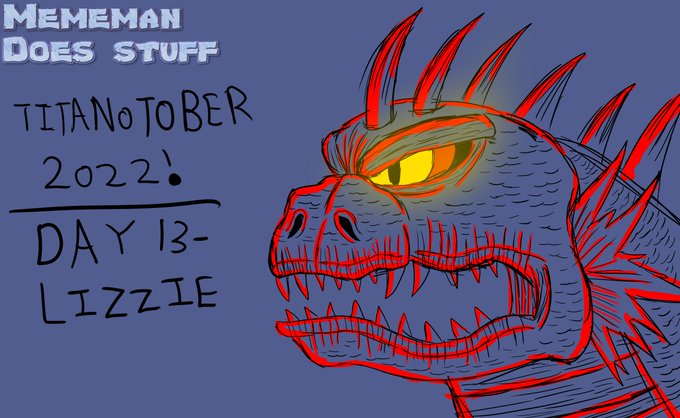 #Titanotober2022 Day 13 Lizzie! took some inspiration from @HenshinJohn 's pic with how he mixed the live action and game design, but I opted for a more cartoony look. #rampage #artists #digitalartist #artistsontwitter
