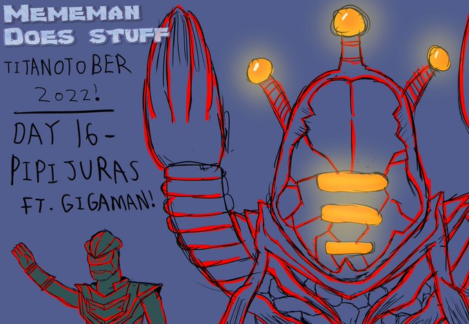 #Titanotober2022 Day 16 sketch! Pipijuras! My most favorite of the Gigabash monsters cos it's jus hipporito but fat which is based! Also Gigaman in a pose referencing a certain something... #Gigabash #Kaiju #Pipijuras #Artist #Digitalartist #ArtistOnTwitter