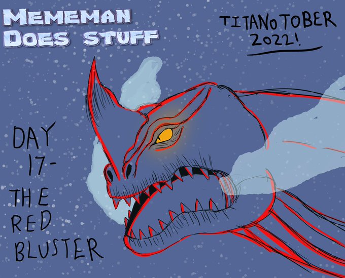 #Titanotober2022 Day 17 sketch! The Red Bluster swimming in the depths below! #TheSeaBeast #kaiju #artists #digitalartists #artistsontwitter