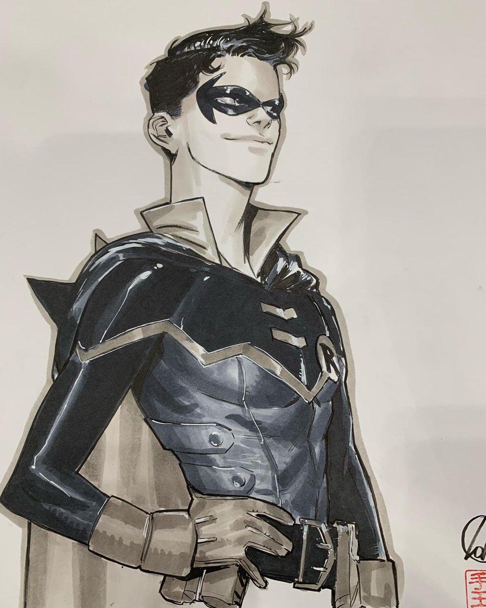 A #damianwayne made during #tokyocomicon . I tried some new (softer point) pens and I think they work nicely, I think I’ll keep using them from now on. #dccomics #robin #tokyocomicon2022