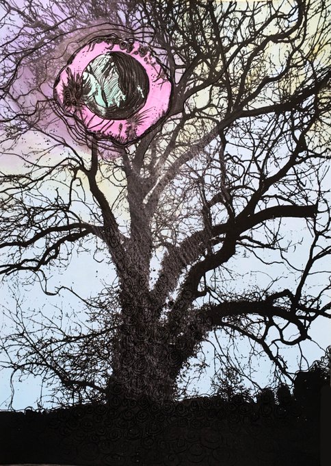 Just delivered this overworked collage from screen prints to ArtSpring Gallery #Tonbridge for the browser in the re-hang #trees #print #ArtistOnTwitter #moon #collageart #collage #Graphics #landscape #wintertree #ArtistOnTwitter