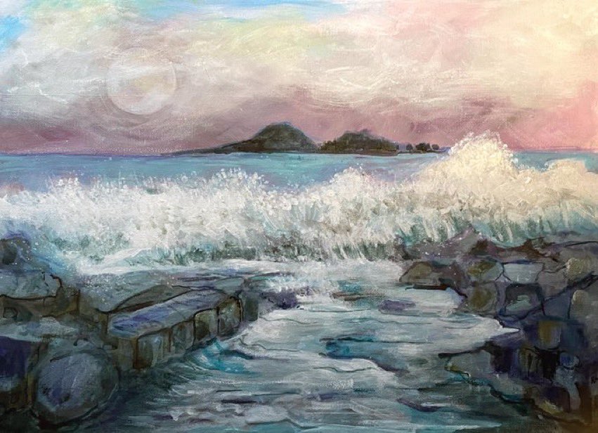 Delivered to @artspringallery #tonbridge for the re- hang on Monday - love a stormy coastline #cornwall #coastline #painting #splash #artwork #artist #seashore #beach #ArtistOnTwitter #fullmoon