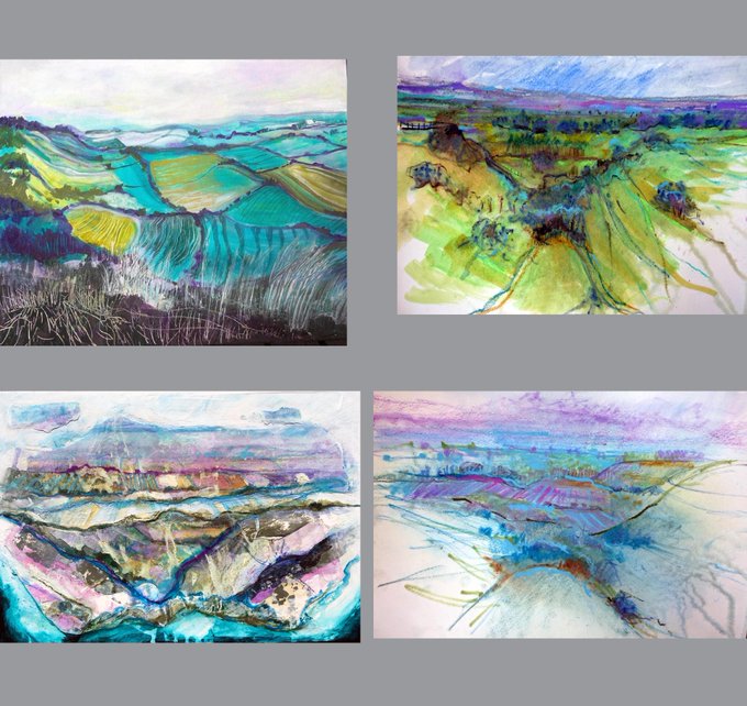 My new work to be on the wall in @artspringallery #Tonbridge - I love to look down on a landscape and painting au plein air - undulating hills & vales #painting #colour #landscape #drawing #drawings #colour #MondayMotivation #ArtistOnTwitter #art #artist