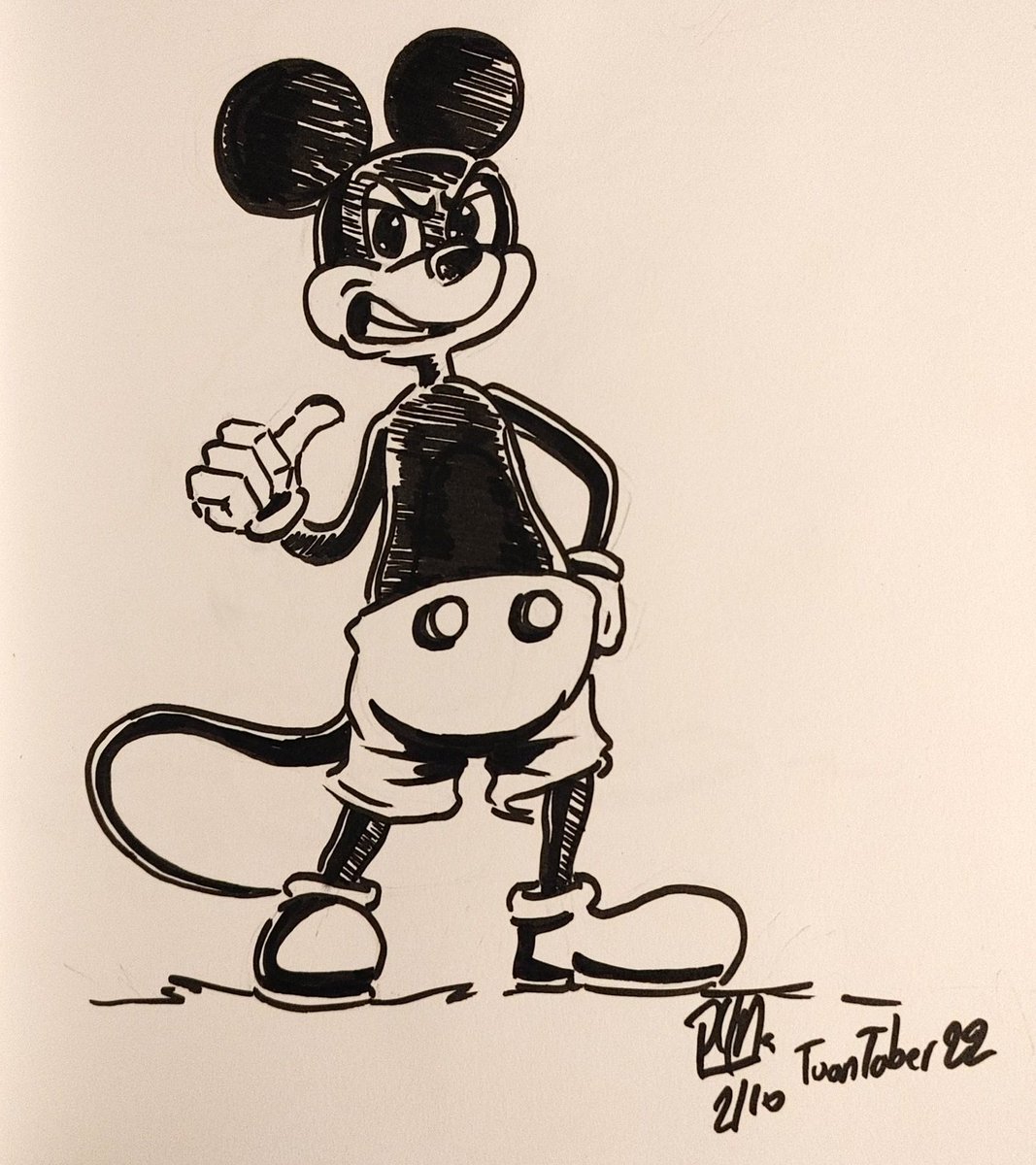 A défaut d'#inktober2022, j'ai vu la proposition pour le #toontober, l'idée est pas mal, on dessine des perso iconique de dessin animé... à condition bien connaître les persos disneys des années 30 😅 ce qui n'est pas trop mon cas. Bref, Mickey et Donald pour le 2 et 3 octobre.