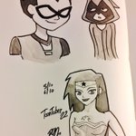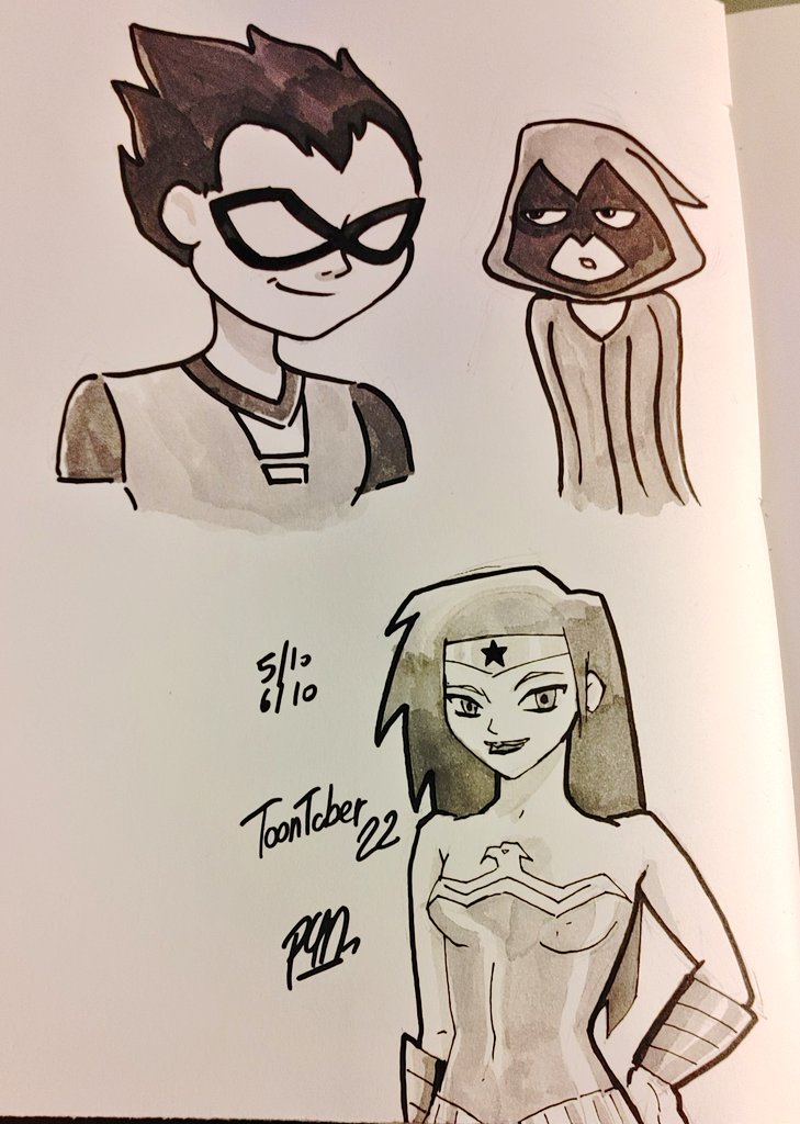 Pour la suite du #ToonTober, c'est des personnages récents de #nickelodeon, des choses que je connais à peine en vérité 😅 (un peu adventure time). Le robin de #TeenTitans a un côté Vegeta. J'ai bien aimé faire la wonderwoman. Le dessin animé a un design original. #Inktober #ink