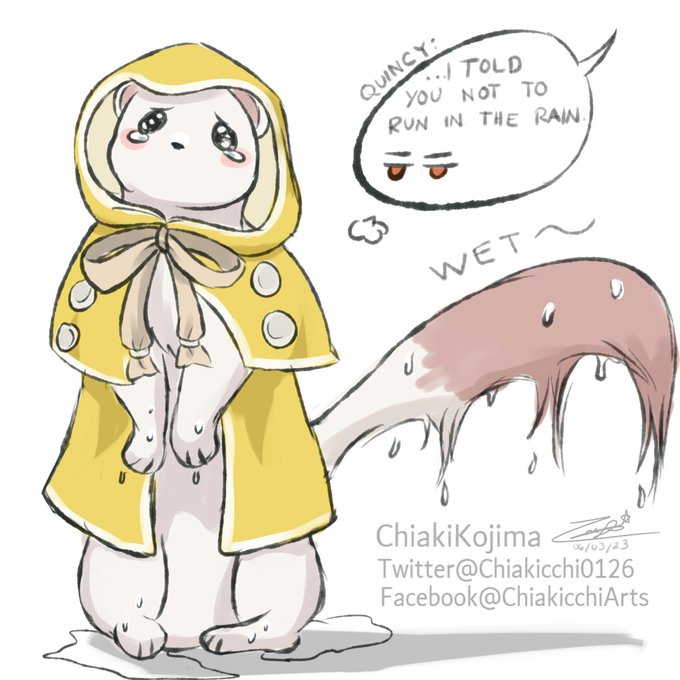 Topper was too excited with his new raincoat he forgot his tail was not covered.😅 #Nucarnival #Nucarnivalfanart #fanart #ぬカニ_FA #NUカーニバル #Topper #Quincy #RainySeason