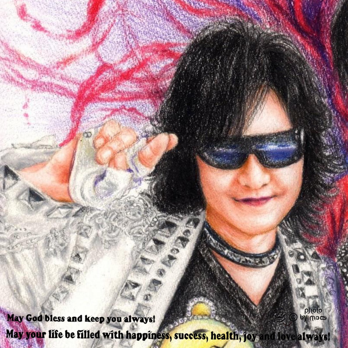 X JAPANのToshiです 学生時代聴かなかったのですが ハマってしまい描いてみました #けーあいの色鉛筆画 #絵描きさんと繫がりたい #イラスト好きな人と繋がりたい #色鉛筆画 #XJAPAN #Toshi #イラスト