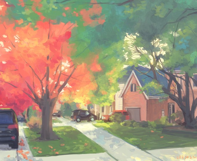 "Loke Townscape" - various crops in random order of one large panoramic painting. #noai #conceptart #digitalart #fantasyart #medieval #town