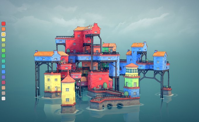 ゴールが存在しない、ゲーム性もない、たくさんの建物をただ美しく作るだけのツール「Townscaper」のデモ版がブラウザから楽しめます。 oskarstalberg.com/Townscaper/ これは締切が迫っている仕事中に手を出していいものではない(私はもう手遅れ) #Townscaper