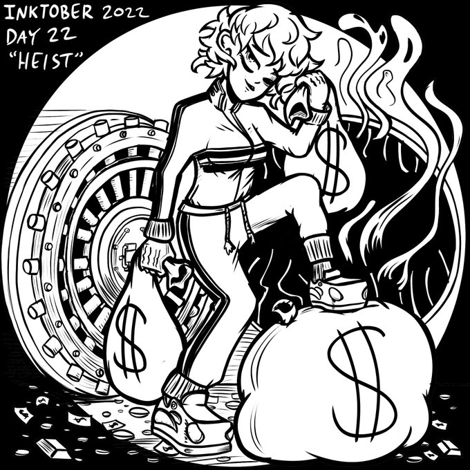 #inktober 2022 - Day 22 #heist - Blowing up vaults for that sweet, sweet cash #inktober2022 #monochrome #lineart #tracksuit