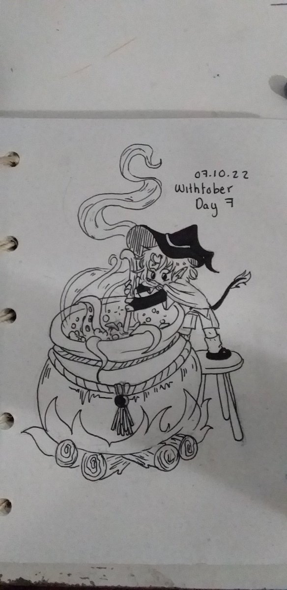 Ame ame Dia 7: Caldera✔️ #witch #witchtober2022 #inktober2022 #Inktober #ilustracion #dibujo #art #arte #tradicional