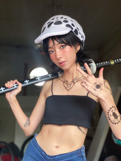 I need to work on my body painting but tried out cosplaying @Envi2Hands’s fem Law! (Suggested by @Biggiebuu hehe) #onepiece #trafalgarlaw #cosplay #anime #trafalgarlawcosplay