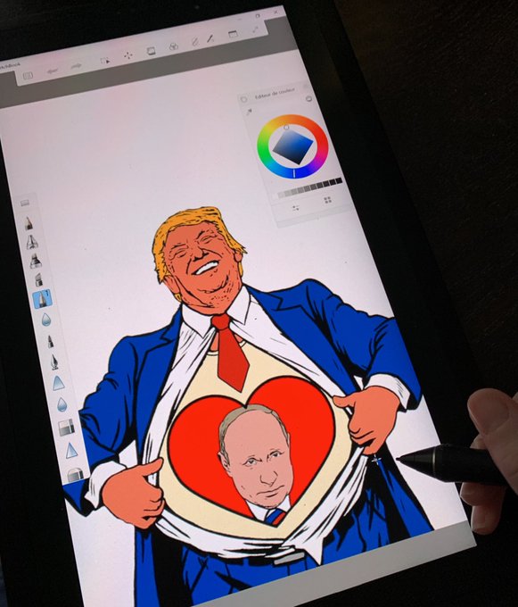 Clearly #TraitorTrump is still siding with Russia. I’m currently working on on a new cartoon about it.