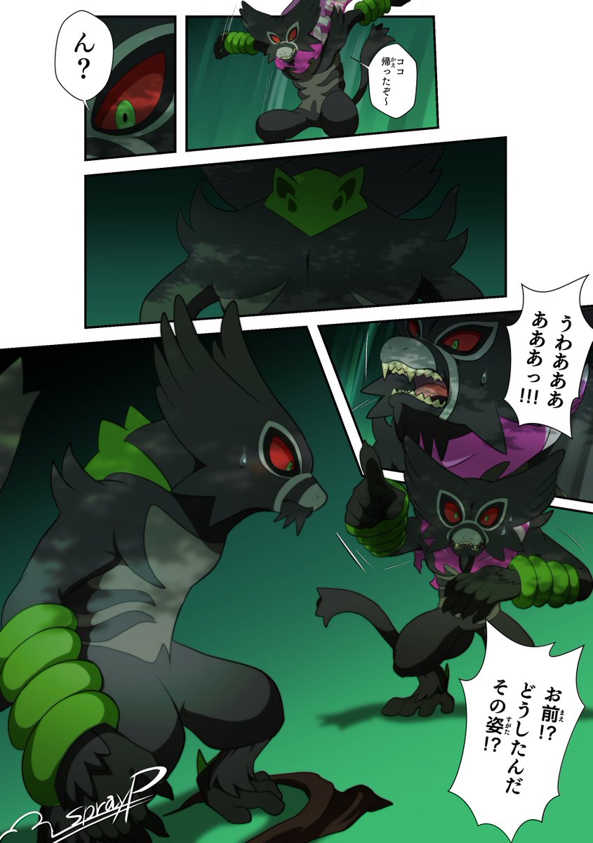 【TF注意】【コミッション】 コミッション(commission)で頼まれて 描かせていただきました。 「ココ(ポケモン映画)→ザルードTF(コミック)」 です。 ご依頼ありがとうございました! #Commission #コミッション #Transformation #Transfurmation #TF #TFEveryday #transfur #Zarude