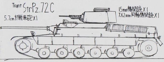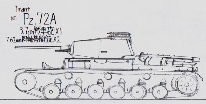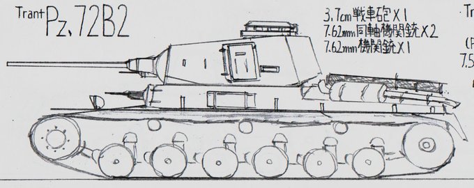 #架空戦車 #イラスト #Trant_Empire 名称 Pz.72B2 乗員 4名 主機 国家重工業振興連合(NGzFdS)製 V12Pz72/A V型12気筒エンジン 主機冷却 空冷 最高速度 41km/h 砲塔旋回速度 12°/s 主砲 3.7cm戦車砲[Vafmann-Kannonel(ヴァフマンカンノネル)製 Vf-PanzerabwehrKanone6/50(mod)] 1基 →