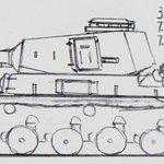 #架空戦車 #イラスト #Trant_Empire "Prototyp Tank G" トラント帝国陸軍の戦車計画案。 Pz.73の計画と元となった戦車で、Pz.73同様の7.5cm砲を持つ中戦車である。車体や砲塔の構造はほとんどがPz.73と同じだが装甲厚がかなり薄く、ほぼ紙も同然の厚さしかない。