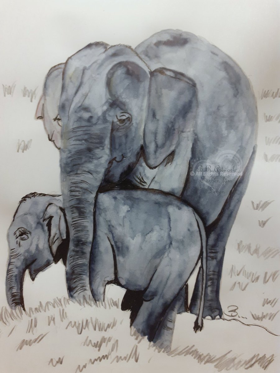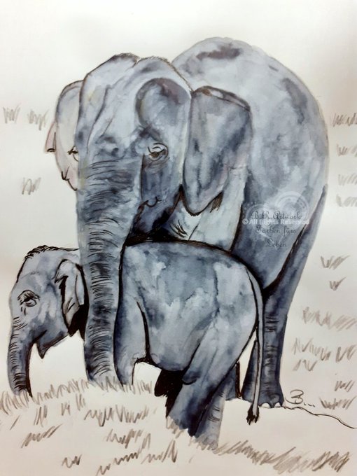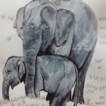 Für den #Travelnovember @JustMe98048073 Tag 12 Laos aus dem Archiv meine Elefantenkuh mit Kalb. #kleineKunstklasse #artwork #illustration #watercolor #ArtistOnTwitter #wildlife