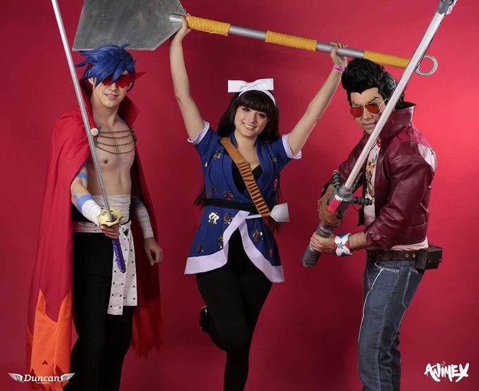 A CRAZY crossover with Travis Touchdown just as crazy as the new No More Heroes 3! The game took so long to come out cause Travis was going to cons all this time #kamina #kaminacosplay #ttgl #GurrenLagann #travistouchdown #nmh3 #cosplay #anime #gaming #switch #suda51