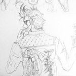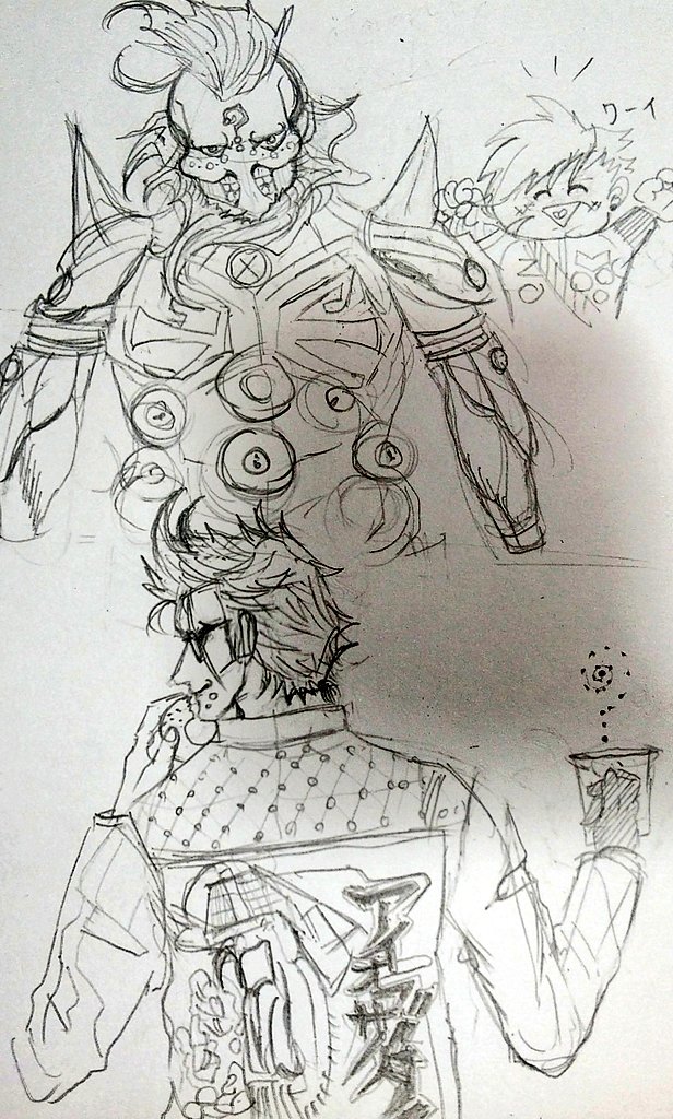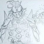 ダグザとアイオブザタイガージャケットのトラヴィスのラフを描きました 線画はスキャンして大まかに抽出したので、着色できればいいなぁと思います😌 #イラスト #fanart #ShinMegamiTensei #travistouchdown #NoMoreHeroes