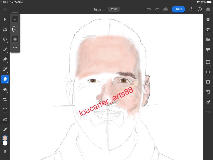 My drawing of Travis Willingham is coming out better than thought it would, I’m pretty happy #digitalart #digitalpainting #digitaldrawing #criticalrole #criticalrolefanart #traviswillingham @WillingBlam @LauraBaileyVO #twitterart #smallartist