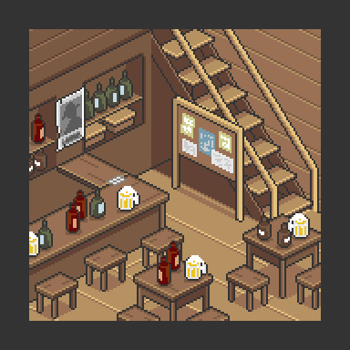 酒場で宝物についての情報収集する This is where you can get lots of information for your next hunt #TreasureHunter #pixelart #pixel_dailies #ドット絵 #毎日ドット絵 @Pixel_Dailies