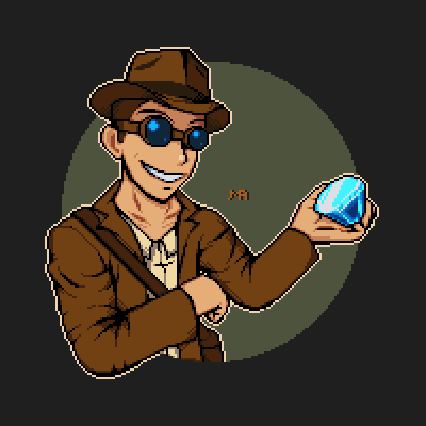 #TreasureHunter for #Pixel_Dailies. I tried making some sort of background this time. I'm not entirely convinced it fits but kinda neat. #pixelart #Pixel #aseprite #ドット絵
