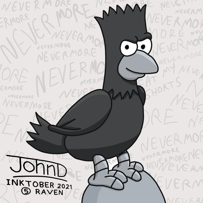 #Inktober day five. Today's prompt is #raven. This one didn't turn out as good as I hoped, but nothing to do but move on. #art #illustration #drawing #ink #inkdrawing #inktober2021 #quoththeraven #treehouseofhorror #eatmyshorts #bartsimpson #bartraven