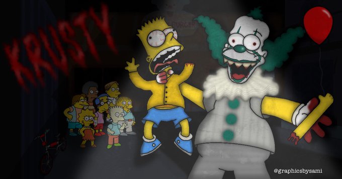 Do you want a balloon too, Bartie? 🎈🤡 @TheSimpsons @FOXTV #thesimpsonshalloweenfanartcontest #treehouseofhorror #thesimpsons #it #pennywise #fanart #fanartfriday