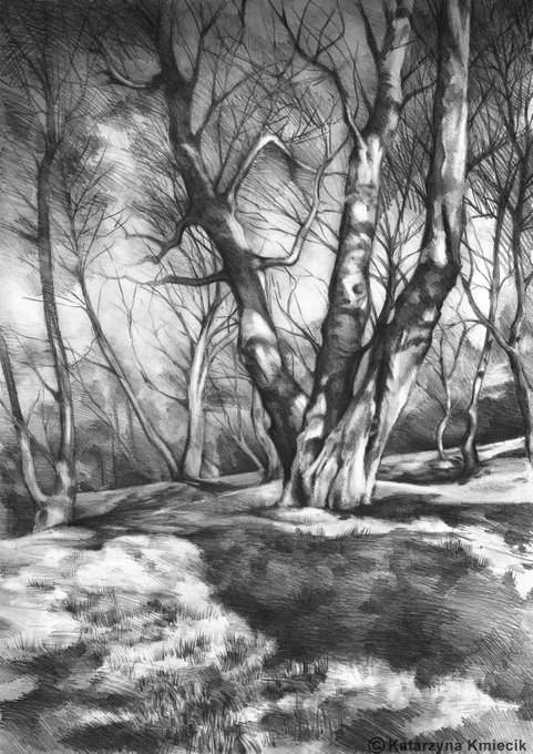This is the first #drawing of #trees that I'm proud of. I hope you like it too! "Musing of Trees", pencil on paper, 50x70 cm, 2007, SOLD. PRINTS: bit.ly/shadowed-trees…
