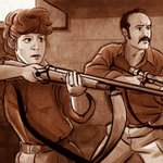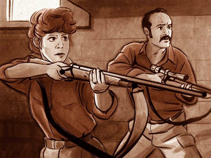 Inktober Day 13 - Roof “Get up on your roof! The things, they’re under the ground!!!” #tremors #rebamcentire #michaelgross #kevinbacon #fredward #inktober #inktober2021 #procreate instagr.am/p/CVWKGhLL4tZ/