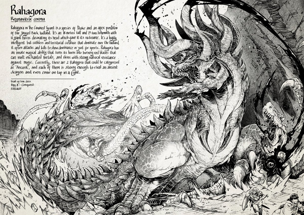 Trial of Ink - Day 8 - Conquest Rahagora Regnavictrix corona Obviously, inspired by Monster Hunter~ XD #trialofink #trialofink2021 #inktober #artober #drawtober